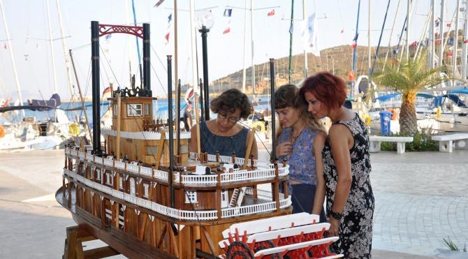 Datça Belediyesi Liman Sanat Galerisi'nde düzenlenen sergi, kalabalık bir davetli topluluğunun katılımıyla açıldı. Ahşap gemi maketlerinden, çocuk oyuncakları ve çeşitli hediyeliklere kadar 250 el ürününün sergilendiği serginin en dikkat çeken parçası, ABD'nin Mississippi Nehri'nde bir zamanlar yüzen kumarhane olarak çalışan geminin, 3 metrelik maketi oldu. Ahşap maket yapımına çocukluk yıllarında başladığını anlatan Çıkıt, şöyle dedi: