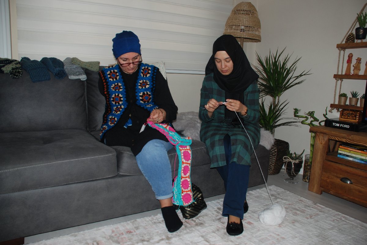 Asya Koşal ve arkadaşları, ördükleri ürünlerden elde ettikleri kazancı Elazığ depremzedelerine gönderecek. (FOTO: İHA)ENGELİMDEN DOLAYI DEPREM BÖLGESİNE GİDEMEDİM
