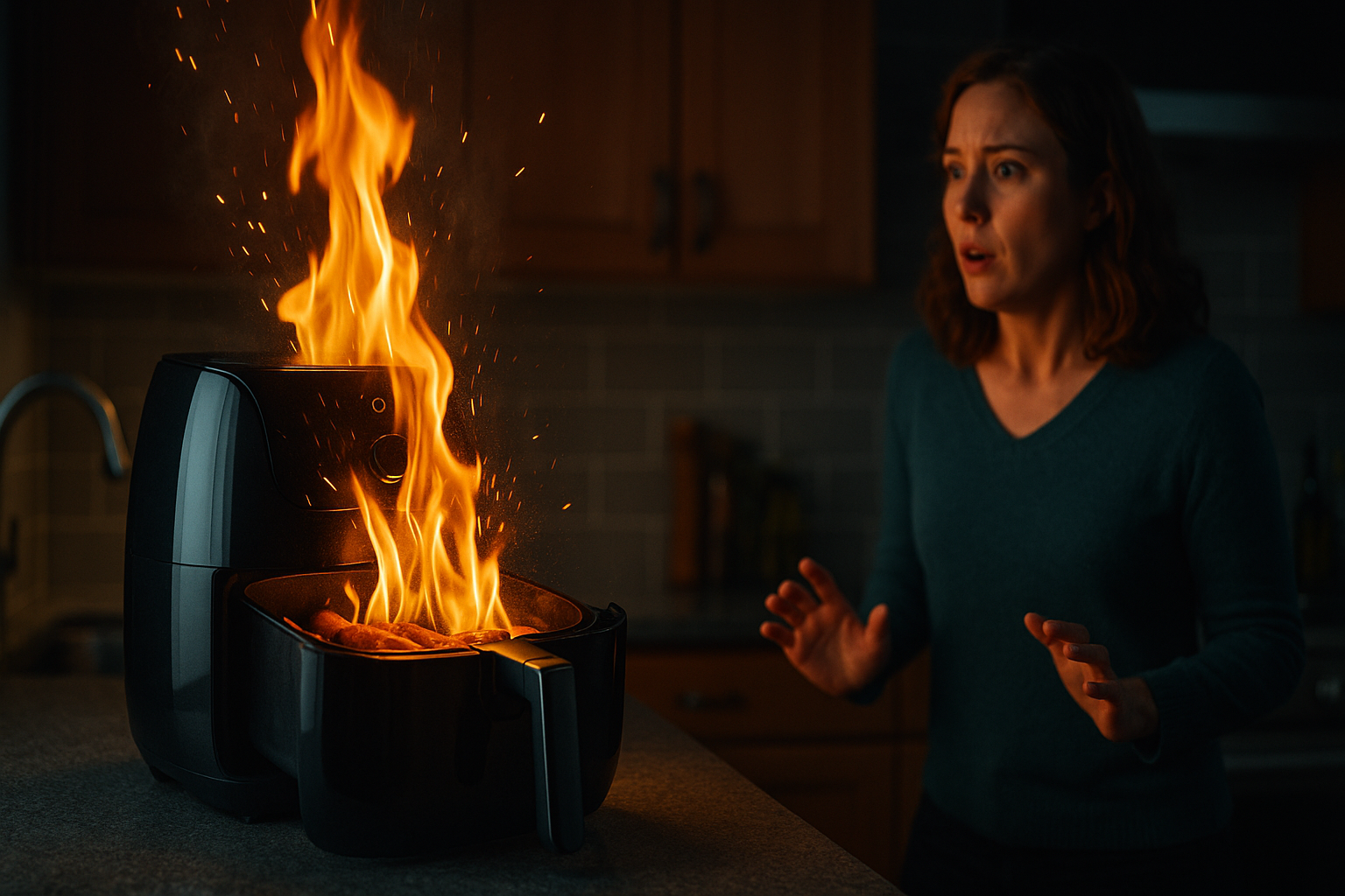 Beslenme ve mutfak güvenliği uzmanları, airfryer’in yüksek sıcaklıkta çalışan bir cihaz olduğuna dikkat çekerek, “Yağ oranı yüksek ve su buharı yoğun yiyecekler, cihazın içindeki hava sirkülasyonu nedeniyle alev alabiliyor” uyarısında bulundu. Özellikle ince dilimlenmiş ya da yüksek yağlı işlenmiş ürünler, birkaç saniye içinde kıvılcım çıkararak yangına sebep olabiliyor.