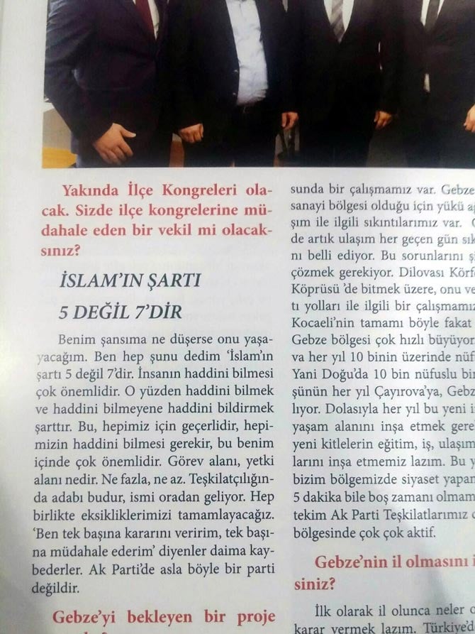 Foto: DHAAKP Kocaeli Milletvekili Cemil Yaman, Gebze'de yayınlanan bir dergiye açıklamalarda bulundu. Cemil Yaman, Meclis'teki odasında Gebze'den gelen gazetecilerin sorularını yanıtladı. Cemil Yaman röportajda, "Yakında ilçe kongreleri olacak. Siz de ilçe kongrelerine müdahale eden bir vekil mi olacaksınız?" sorusunu, "Ben hep şunu dedim; "İslam'ın şartı 5 değil, 7'dir. İnsanın haddini bilmesi çok önemlidir. O yüzden haddini bilmek ve haddini bilmeyene bildirmek şarttır. Bu hepimiz için geçerlidir. Hepimizin haddini bilmesi gerekir. Bu benim için de çok önemlidir. Görev alanı, yetki alanı nedir ? Ne fazla, ne az. Teşkilatçılığın da adabı budur, ismi oradan geliyor. Hep birlikte eksiklerimizi tamamlayacağız. 'Ben tek başına kararını veririm, tek başına müdahale ederim' diyenler daima kaybederler. Ak Parti de asla böyle bir parti değildir" diyerek cevapladı. Cemil Yaman röportajda seçimlerle ve Gebze ile ilgili açıklamalarda bulundu.