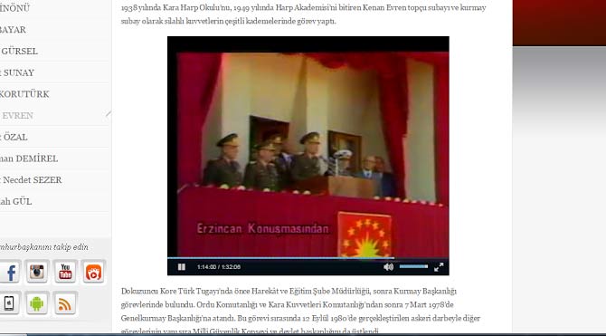 Bu bölümdeki, 7. Cumhurbaşkanı Kenan Evren'i tanıtan belgesel videoda, 12 Eylül darbesine de geniş yer veriliyor. Evren’i anlatan belgeselde, darbenin adeta reklamı yapılıyor. Videoda, Cumhurbaşkanı Erdoğan’ın seçim meydanlarında sık sık referans gösterdiği Demokrat Parti döneminin Cumhurbaşkanı Celal Bayar’ın, “Bu darbe hayırlı olmuştur” sözüne de yer veriliyor.