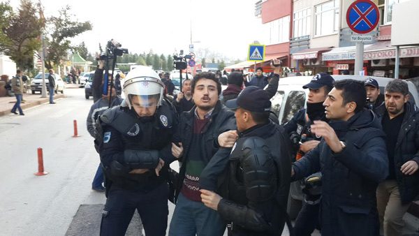 FOTO:DHA- Kocaeli'deki gözaltılara tepki gösteren üniversite öğrencileri ve personeli ile polis arasında arbede çıktıKOCAELİ'DE 19 GÖZALTI