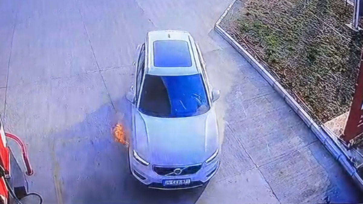 Metehan Parlakbudak, cipiyle seyir halindeyken aracının arızalandığını fark etti. Parlakbudak, cipini kontrol etmek için yol üzerindeki akaryakıt istasyonuna girdiği sırada aracın motor kısmı alev aldı. O anlar iş yerinin güvenlik kamerasına yansıdı.