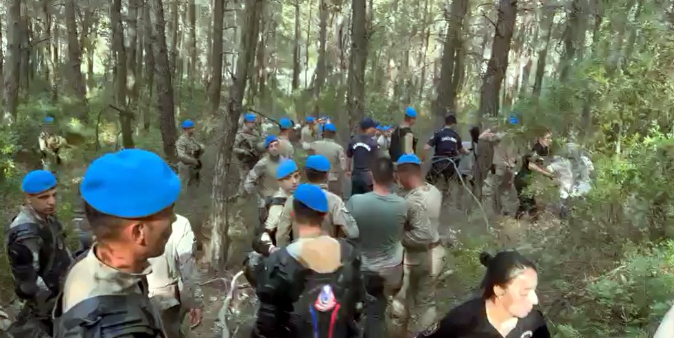 Jandarma ve takviye olarak gelen polis ekipleri, çam ağaçlarına sarılarak direnmeye çalışan çevreciler ve köylüleri kollarından tutup, zorla alandan çıkardı.
