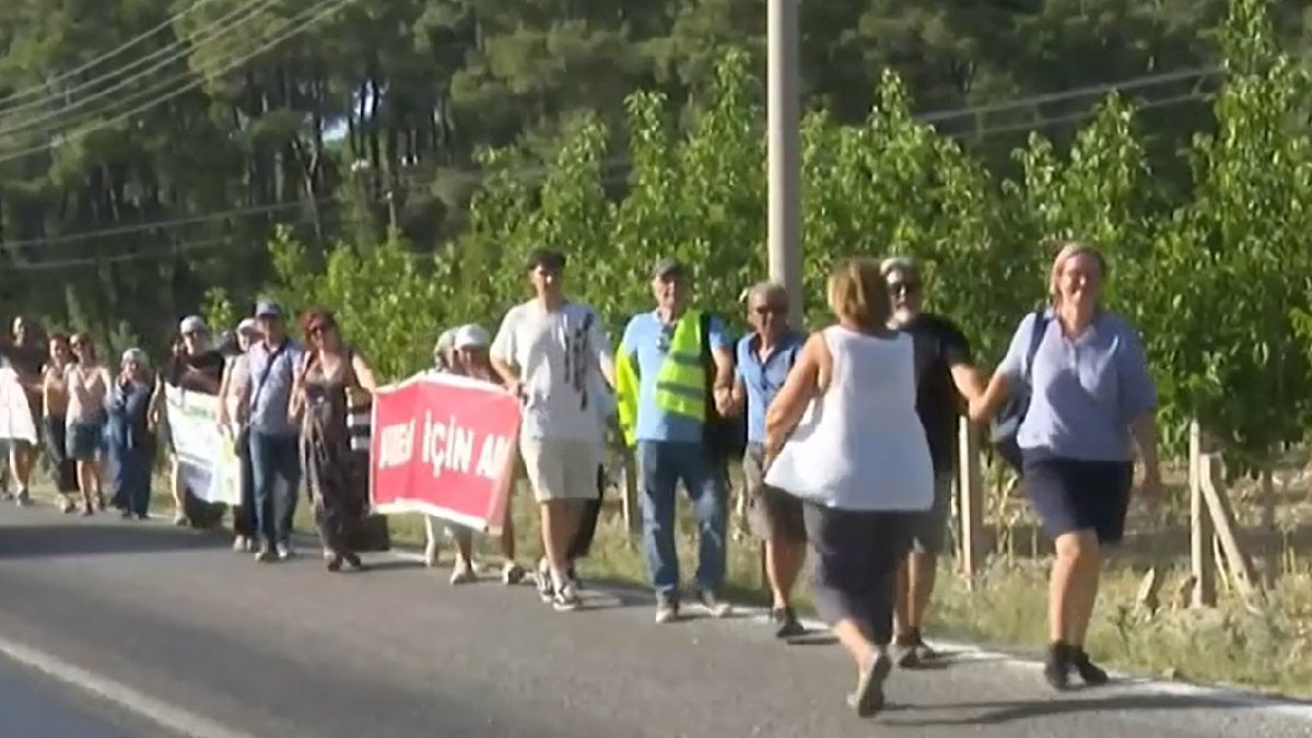 Muğla’daki Akbelen ormanlarındaki ağaç kesimini, köylüler ve çevre aktivistleri insan zinciri oluşturarak protesto etti.