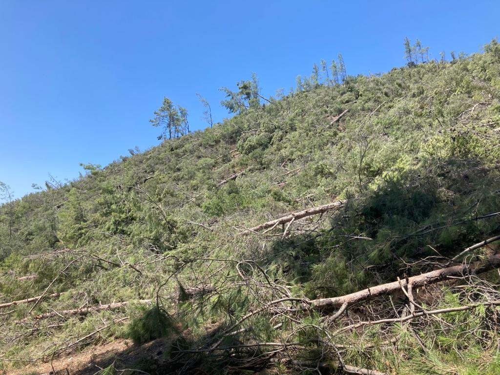 4 günden beri motorlu testere ile devam eden orman kıyımında bugün iş makineleri ve dozerlerinde devreye girdiği ve genç ağaçları iş makineleri ile sökerek yol açtığı ve temizlik yapıldığı görüldü.