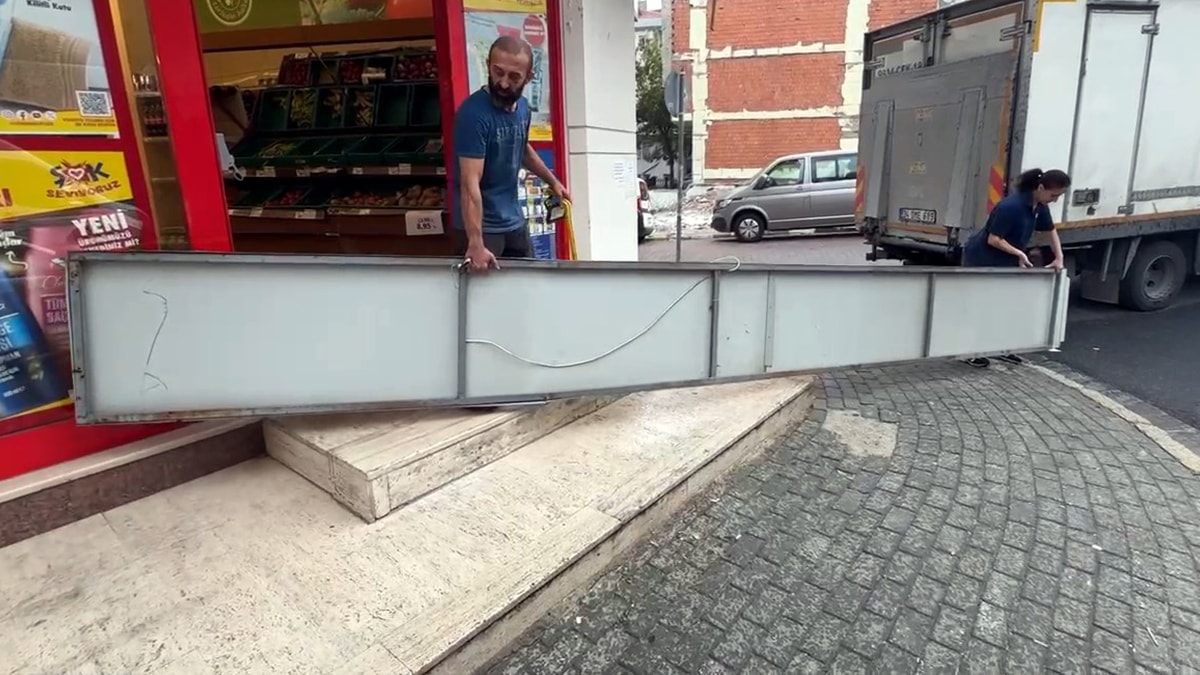 Kaza dün saat 11.00 sıralarında Cihangir Mahallesi Arpacı Sokak'ta meydana geldi. 34 DME 689 plakalı kamyon geri manevra yaparak markete yanaşmak istedi. Bu sırada kamyonun kasası marketin tabelasına çarptı. Çarpmanın etkisiyle yerinden sökülen metrelerce uzunluktaki tabela, elinde poşetlerle marketten çıkan adamın üzerine düştü. Tabelanın çarpmasıyla dengesini kaybeden adam yere düştü.