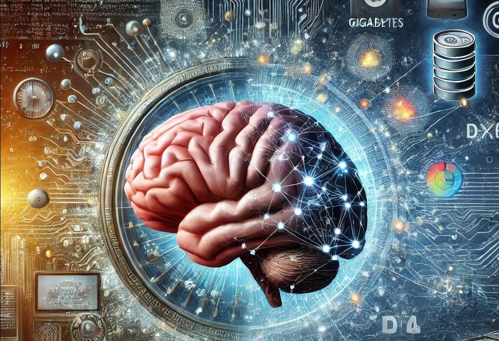 İnsan beynine dönersek, Scientific American'da 2010 yılında yayımlanan bir makaleye göre, insan beyninin bellek kapasitesi yaklaşık 2,5 petabayta eşdeğer olarak hesaplanmıştır. Bir petabayt, 1024 terabayt veya bir milyon gigabayta eşittir. Bu da demek oluyor ki, ortalama bir insan beyni yaklaşık 2,5 milyon gigabayt dijital bellek depolayabilecek kapasiteye sahiptir.