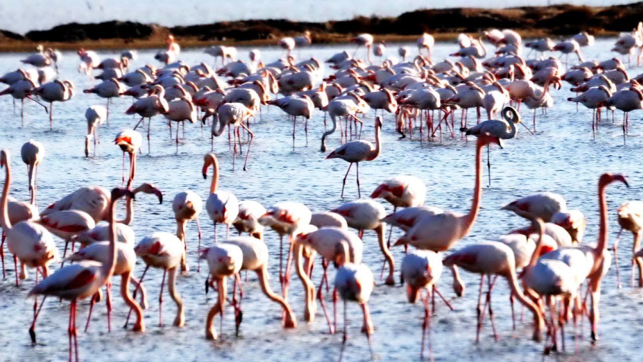 Muğla’nın Bodrum ilçesi yakınlarındaki Boğaziçi Mahallesi’nde koruma altında olan Tuzla Sulak Alanı ve Tabiat Parkı’nda havaların soğuması ile iç Anadolu’dan akın akın gelen flamingoların sayısı 7 bini aştı.