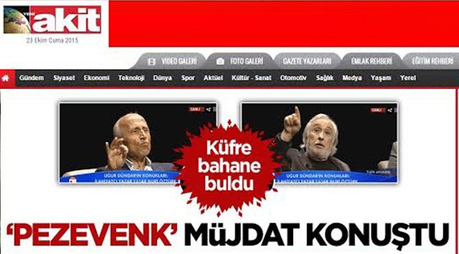 Müjdat Gezen'in Halk TV'deki eleştirilerine göndermede bulunan Akit paçavrası, "Pezevenk' Müjdat küfürün bahanesini buldu" diyerek bir kez daha çirkin yüzünü gösterdi.