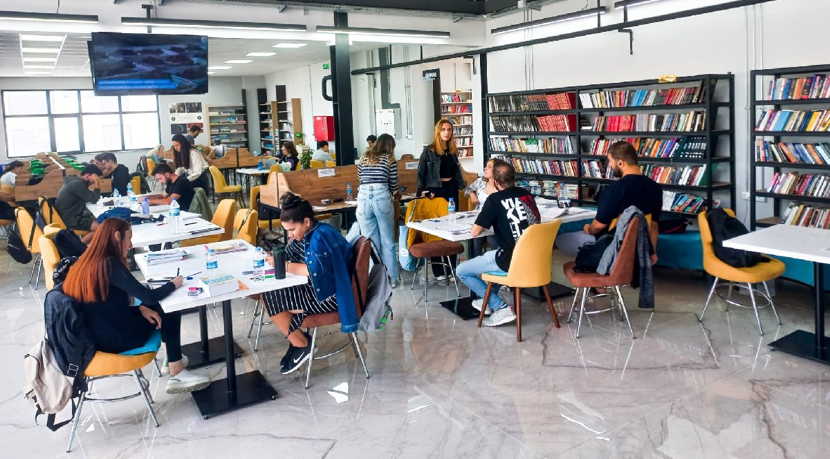 - Üst katta gençler kütüphanede ders çalışıyor, ulaşamadıkları kitaplara ulaşıyorlar, çay içip sohbet ediyorlar, birbirleriyle tanışıyorlar.