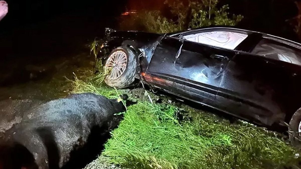 BÜYÜKBAŞ HAYVANA ÇARPARAK ŞARAMPOLE GİRDİLER