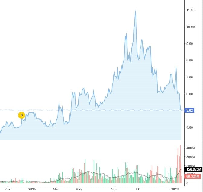 Eylül ayında lot fiyatı 11,40 TL'ye ulaşan hisselerin güncel değeri 5,02 TL'ye kadar inmiş durumda. Şirketin yalnızca 3 aydaki düşüş performansı ise yüzde 40 seviyesinde.