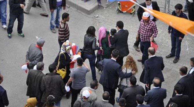 Gezi eylemleri sürecinde AKP Genel Başkanı olan Recep Tayyip Erdoğan tarafından “Başörtülü kadınları darp ettiler” sözleri ile, mağduriyet yaratılmak istenerek Gezi direnişi çarpıtılmaya çalışılmıştı. Seçim sürecinde ise HDP’yi toplum üzerinde baskı kurmakla suçlayan AKP, Başbakan Davutoğlu’nun Ağrı mitinginde protesto hakkını kullanan başörtülü bir kadını, Başbakan Davutoğlu’nun korumalarının eliyle darp etti.