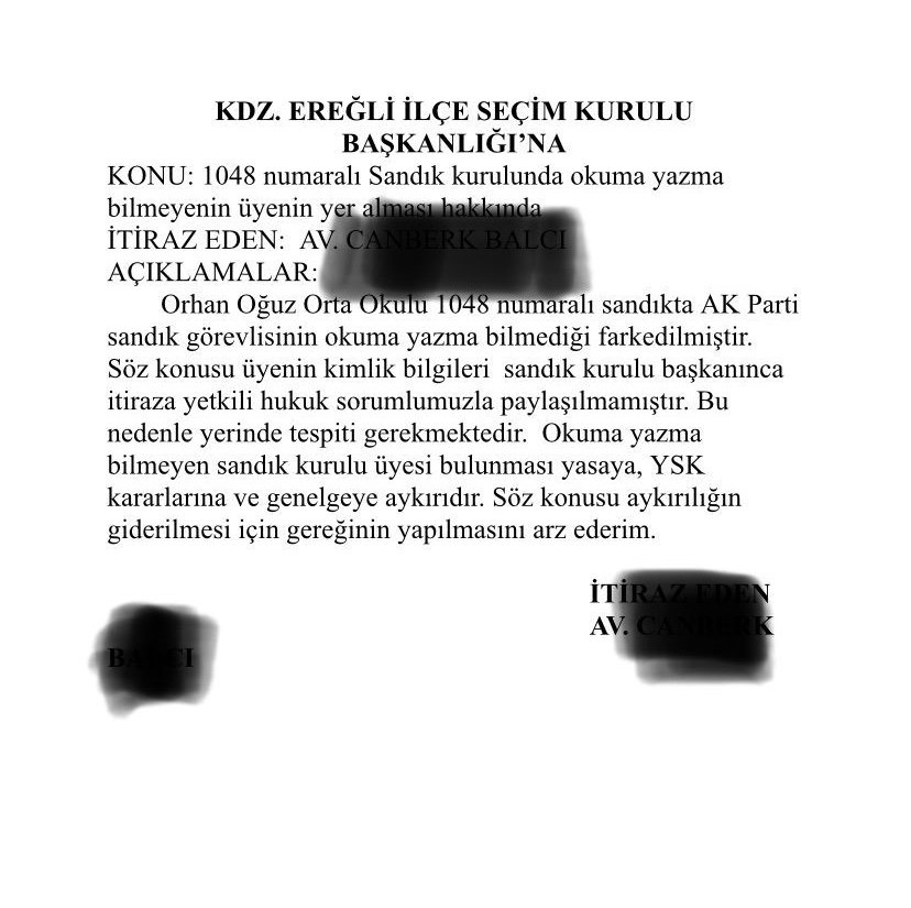 Avukat Hasan Tuzcu, yaptıkları itirazı sandık başkanının dikkate almadığını belirterek, “Seçmenin kimliğinde ad ve soyadını okuyamayınca fark ettik. İlgili kanun maddelerine göre sandık görevlileri okur yazar olmak zorundadır. Okur yazar olmadığı için sandık görevlisi kişi görevini yapamıyor. Yani kimlik kontrollerini yapamıyor ve oyların doğru sayılamamasına neden olacaktır. Yani seçim güvenliği tehlikeye düşüyor. Ayrıca Türkiye Barolar Birliği ile iletişime geçtik ve onlar da kesinlikle görev alamayacağını söyledi” dedi.