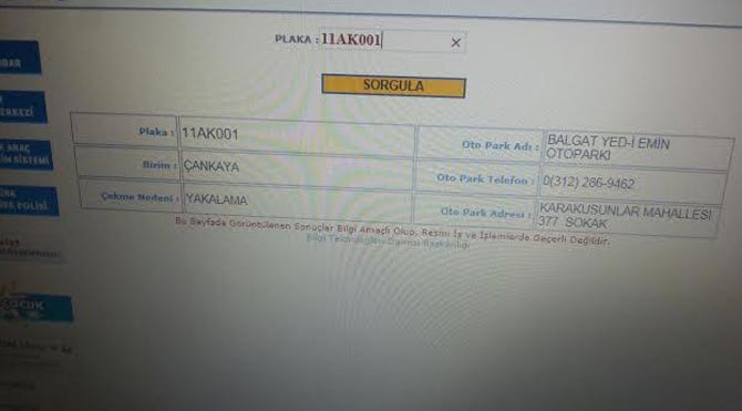 AKP İl Başkanlığı’na ait 11 AK 001 plakalı siyah Audi araç, Ankara Balgat’taki “Yed-i Emin’’ Otoparkı”nda tutuluyor. AKP Bilecik İl Başkanı Kadir Bayrak da, “Bilecik11.com” haber sitesine yaptığı açıklamada, aracın, eski İl Başkanı Ramazan Kurtulmuş zamanında alındığını vurguladı. Bayrak, aracın Ankara Emniyet Müdürlüğü’nde bağlı olduğunu da doğrulayarak, “Sadece bu araç değil aynı durumda 672 araç var” dedi. AKP’li Bayrak, araçla ilgili yargı sürecinin de devam ettiğini belirtti.