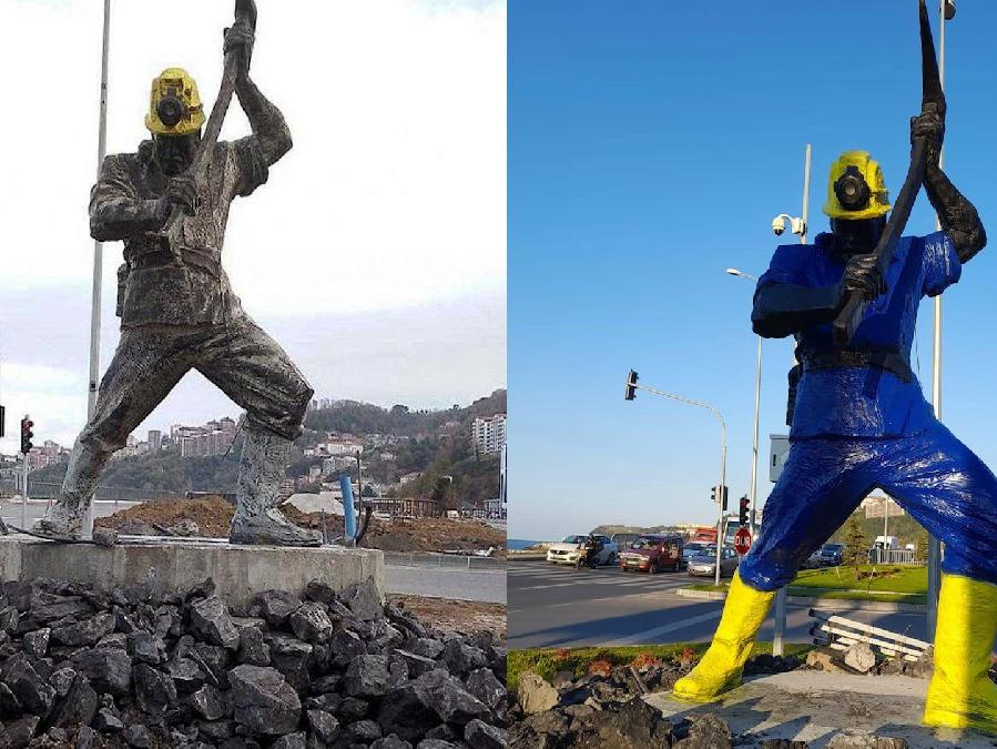 27 Ekim günü ise AKP'li Belediye Başkanı Ali Bektaş'ın talimatıyla heykeldeki madencinin el ve yüzü siyaha, madenci kıyafeti maviye, bareti de sarı yağlı boğa ile boyandı. Eserini kendisine bilgi verilmeden boyandığını öğrenen Heykeltıraş Metin Yurdanur, belediye yetkililerine tepki gösterdi.