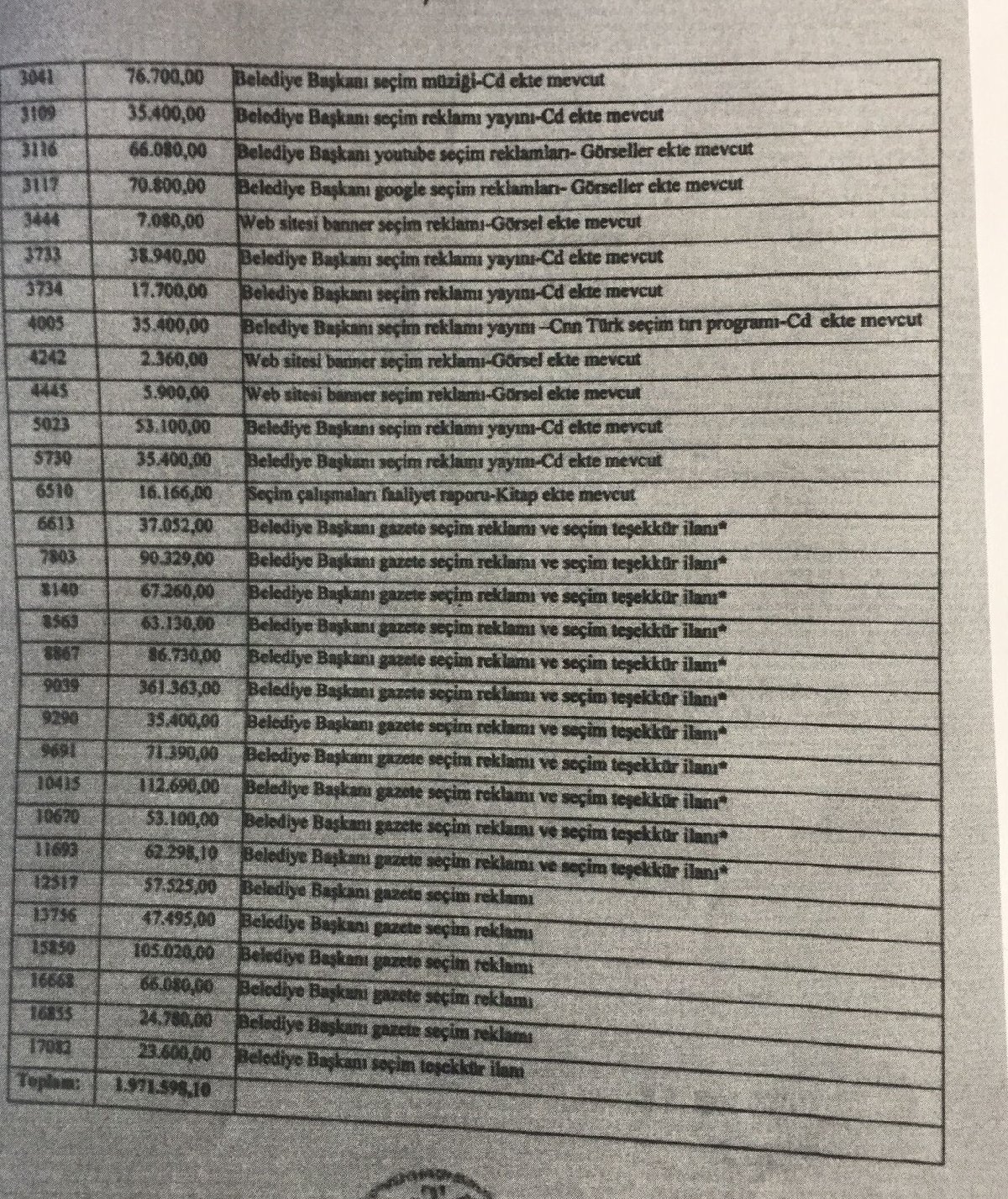 Sayıştay, Bursa'da Osmangazi Belediye Başkanı AKP'li Mustafa Dündar'ın seçim kampanyasında ilan, reklam ve tanıtım giderleri için belediye bütçesinden tam 1 milyon 971 bin 598 lira 10 kuruş harcadığını ortaya çıkardı.