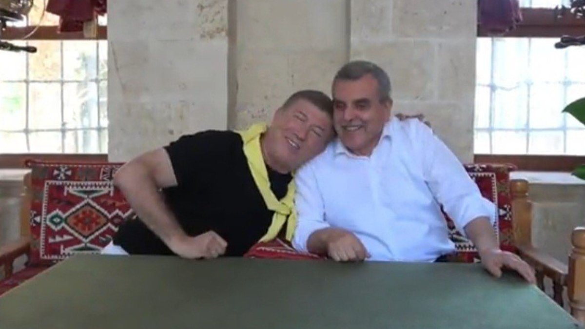 Başkanın bu kararını açıkladığı sırada Tanju Çolak kendisine methiyeler dizip, öpücüğe boğdu.