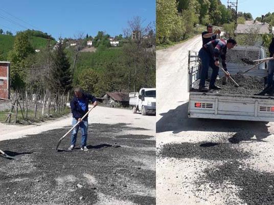 Yaklaşık 2 yıldır yolda çok sayıda çukurun ulaşması nedeniyle zor anlar yaşayan vatandaşlar, son çare olarak yolu kendileri yapmaya karar verdi.