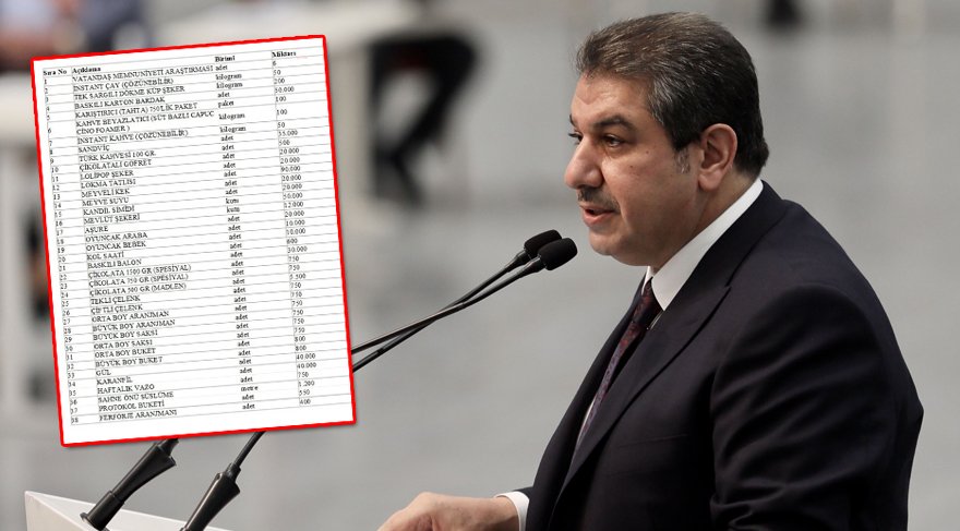 Bu yılki listeye eklenen yeni ürünler arasında 600 kol saati, 20 bin lolipop şeker, 20 bin çikolatalı gofret, 100’er gramlık 500 adet Türk kahvesi, 35 bin adet kaşarlı sandviç, 90 bin adet lokma tatlısı, 30 bin adet baskılı balon ve 400 adet ferforje aranjman da yer aldı. Geçen yılki listede bulunan 60 bin adet kolonya bu yılki listede yok. Her iki listede yer alan ürünler arasında meyveli kek, meyve suyu, kandil simidi, aşure, 7 bin kutu çikolata, 80 bin gül ve karanfil de bulunuyor.