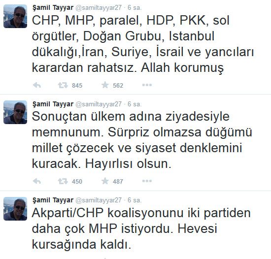 İşte Şamil Tayyar'ın attığı o tweetler: