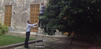 Ağaca merdiven dayayan görevliler saatlerce milletvekilleri için kara yemiş topladı.