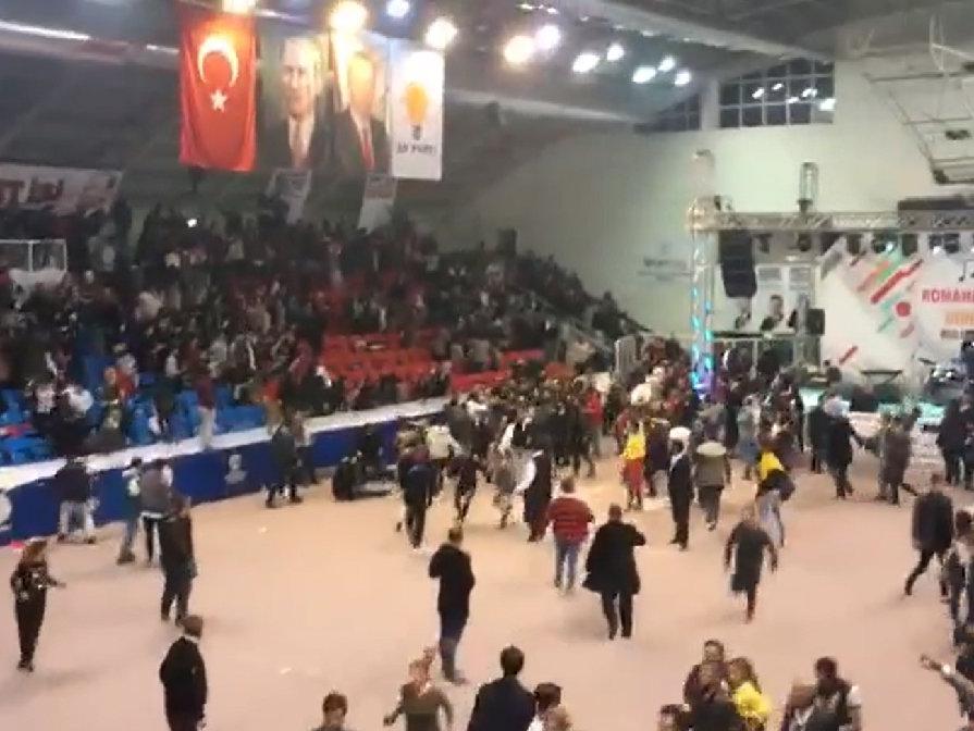 Uzun süre kendilerine su verilmediğini iddia eden vatandaşları sakinleştirmek isteyen partililer ikram kutularını getirdi ancak bu defa da salondaki vatandaşlar kendi aralarında tartışmaya başladı.