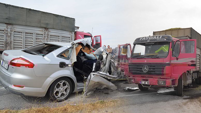 Azmi Çıracı yönetimindeki otomobil, karşı yönden gelen Hasan Solak'ın kullandığı kamyonla çarpıştı.