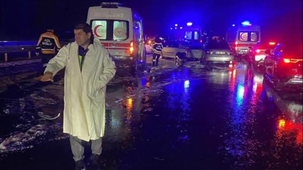 Kentte başlayan şiddetli dolu ve sağanak nedeniyle görüş mesafesi düşüp, yol kayganlaşırken, 12 araç zincirleme kazaya karıştı.