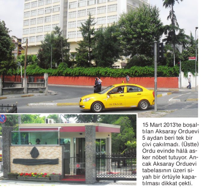 İSTANBUL Vatan Caddesi üzerindeki Aksaray Orduevi yaklaşık 4 ay önce tadilat yapılacağı gerekçesiyle tamamen boşaltıldı. Mart 2013 itibariyle boşaltılan Aksaray Orduevi binasında beş aydır tadilat adına tek bir çivi bile çakılmamış durumda. Türk Silahlı Kuvvetleri’ne (TSK) yakın kaynaklar ve Orduevi çalışanlarından alınan bilgiye göre ağustos ayı itibariyle orduevinde tadilat başlayacakmış. Ancak bunun için de yapılan herhangi bir ihale olmadığı gibi işi kimin üstlendiğine ilişkin orduevi binasının içinde ve dışında herhangi bir tabela bulunmuyor. TSK’ya yakın kaynaklar ile emlak piyasasının yakından takip eden gayrimenkul uzmanları arasında, Aksaray Orduevi’nin Toplu Konut İdaresi’ne (TOKİ) devredildiği konuşuluyor.50 yıllık bir bina