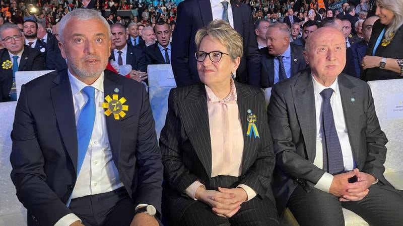 Akşener, bugün İYİ Parti'nin 7. yılı ve Cumhuriyetin 101. yılı dolayısıyla düzenlenen etkinlikte yer aldı ve burada İYİ Parti lideri Müsavat Dervişoğlu ile birlikte oturdu.