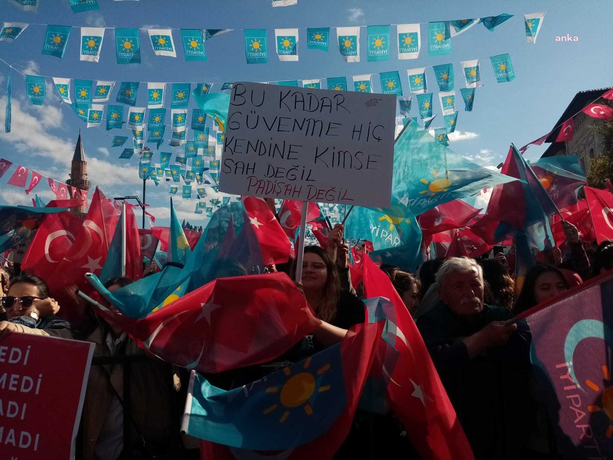 * Bu şehir, bu Cumhuriyet’i kuran şehir. Siz kurdunuz, buranın iradesi kurdu. Dolayısıyla bu harami düzeni, bu hırsız düzenini, bu çalma düzenini, bu hak yeme, haram yeme düzenini, kul hakkı yiyen düzeni 14 Mayıs’ta değiştirecek miyiz? Sayın Kılıçdaroğlu’nu Cumhurbaşkanı yapacak mıyız? İYİ Parti’yi birinci parti yapacak mıyız? Allah razı olsun.” ANKA