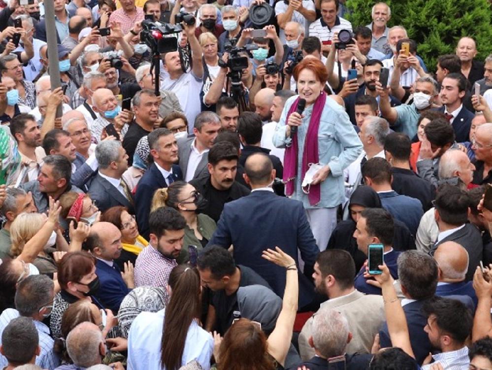 İki buçuk yıldır il il, ilçe ilçe, esnaf esnaf gezdiğini hatırlatan Akşener, "O esnaf dükkanlarında çaresiz gençler, EYT'ye takılan mağdur insanlar, gebe ineğini kesime gönderen süt üreticileri, ağlaya ağlaya ineklerini kesime gönderen besiciler gördüm. Bu sene nisan ayındaki gübreyi atamadı çiftçilerimiz, köylülerimiz. Su kullanırken elektrik parasından inim inim inleyen çiftçilerimizi gördük. Akan derelerden, akan sulardan para alan özel elektrik şirketlerini gördüm. Çiftçilerin başına demir yumruk gibi inen özel şirketler gördüm. Ve bunlara bigane kalan bir iktidar var" dedi.