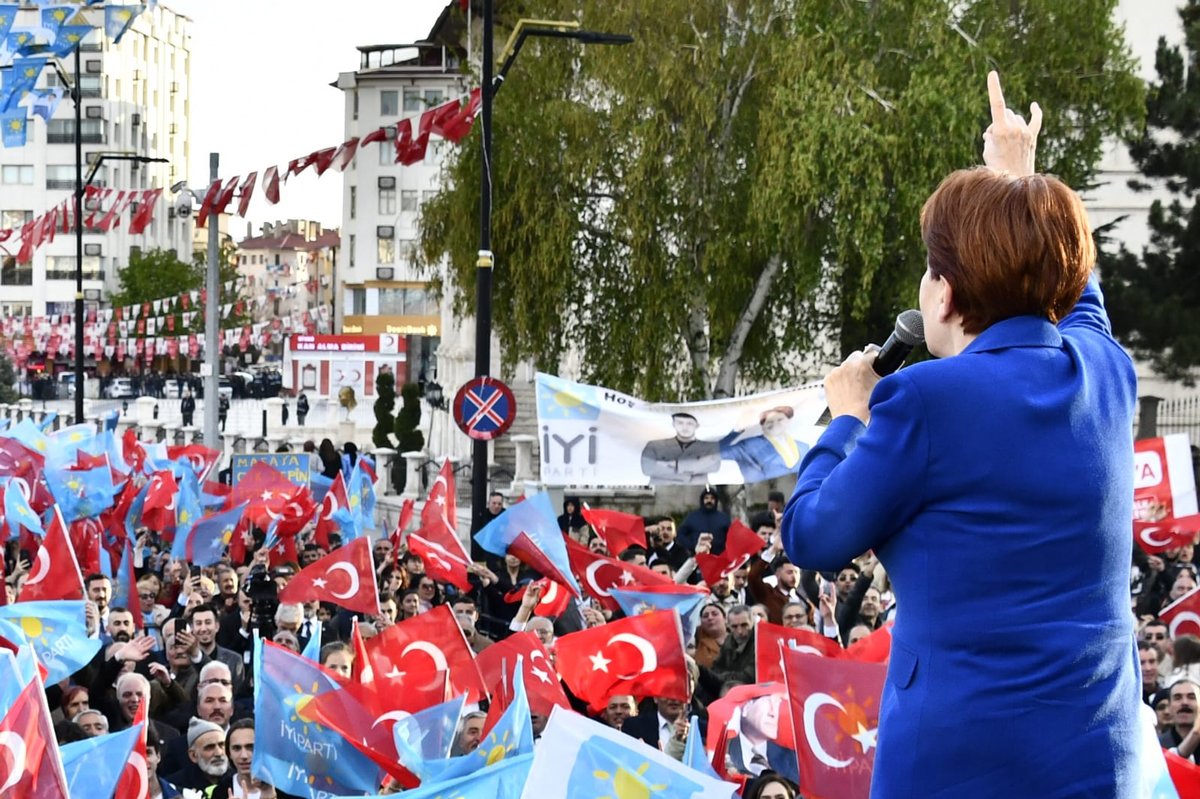 Akşener, Sivas mitinginde konuştu. "Mavi gözlü Bozkurt'umuzun, Cumhuriyet'i kurduğu Sivas merhaba" diyen Akşener, kendisini bekleyen kalabalığı bozkurt işareti yaparak selamladı.
