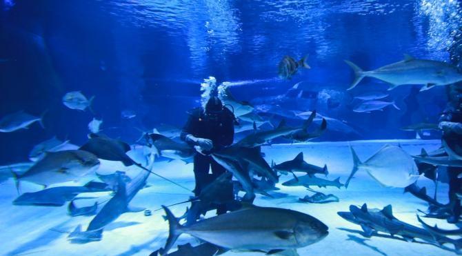 İbrahim LALELİ ANTALYA, (DHA) - ANTALYA Akvaryum`un açılışının 3`üncü yılına özel 13 Şubat- 13 Mart tarihleri arasında geçerli olmak üzere giriş ücretinde yüzde 50 indirim yapılacak. Basın toplantısı sırasında balık adamların onlarca köpek balığını elleriyle beslediği anlar, görenleri hem şaşırttı hem de korkuttu.