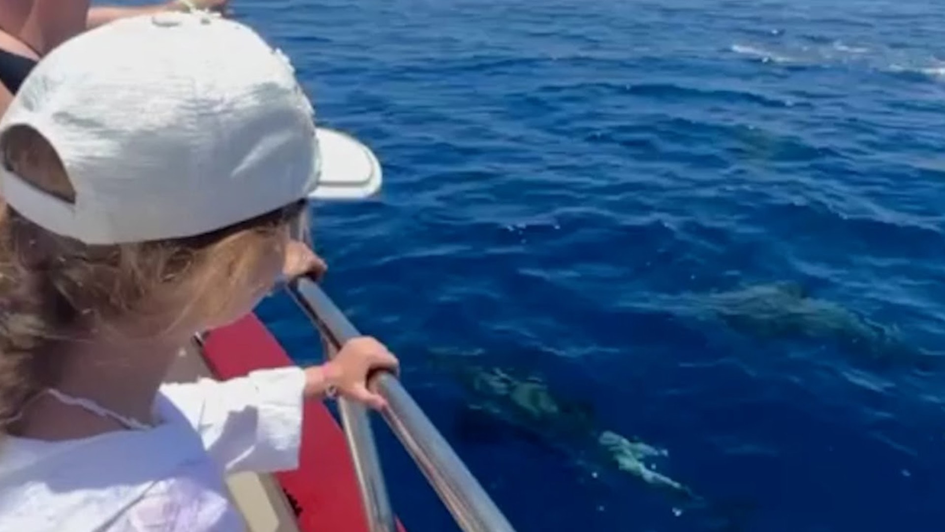 Turistler, dakikalarca teknenin yanı başında yüzen yunusları izledi, alkışlayarak sevinç gösterisinde bulundu.