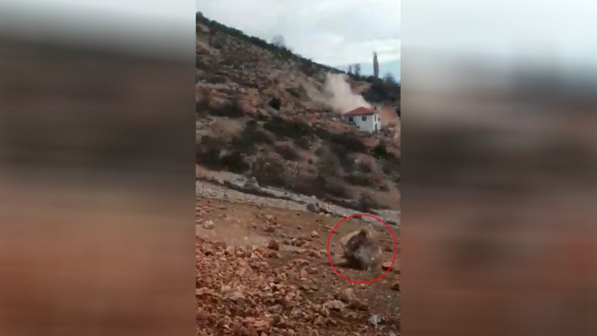 Kayaların bir kısmı evlerin yakınlarına kadar gelirken, bir evin de bahçe duvarına zarar verdi. Olay anında bölgede bulunan kadın, çevredekileri kaçmaları konusunda çığlıklarla uyararak, cep telefonuyla o anları kaydetti. Jandarma, doğa olayı olabileceği değerlendirilen durumla ilgili soruşturma başlattı. (DHA)