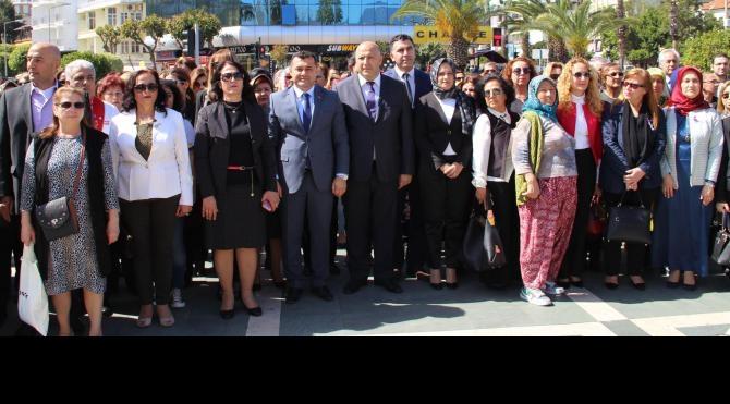 Alanya'da Kent Konseyi'nin organize ettiği 8 Mart Dünya Kadınlar Günü kapsamında 'Kadına Şiddete Hayır, Bir Fırça da Sen At' etkinliği düzenlendi. Hükümet Meydanı'ndaki Atatürk Anıtı önünde düzenlenen etkinlik saygı duruşu ve İstiklal Marşı'nın ardından çelenk sunumuyla başladı. Etkinliğe, Alanya Kaymakamı Hasan Tanrıseven'in eşi Ceylan Tanrıseven, Alanya Belediye Başkanı Adem Murat Yücel, Alanya Kent Konseyi Başkanı Nurhan Özcan, siyasi partilerin kadın kolları başkan ve üyeleriyle vatandaşlar katıldı.