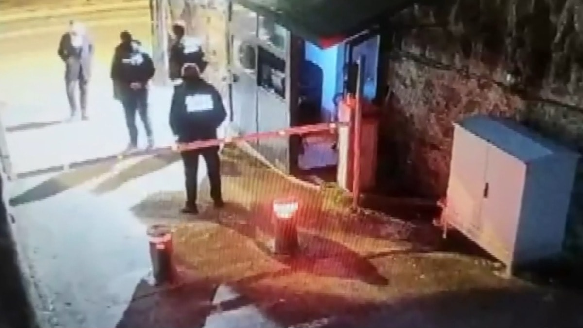 Görüntülerde Ahmet Furkan B.'nin hafif ticari aracıyla bariyerlerle kapalı holding girişine geldiği ve hız kesmeden girmeye çalıştığı görülüyor. Aracın dubaların üstünde asılı kalmasının ardından aracından inen şüphelinin güvenlik görevlilerinin üstüne yürüdüğü görülüyor.