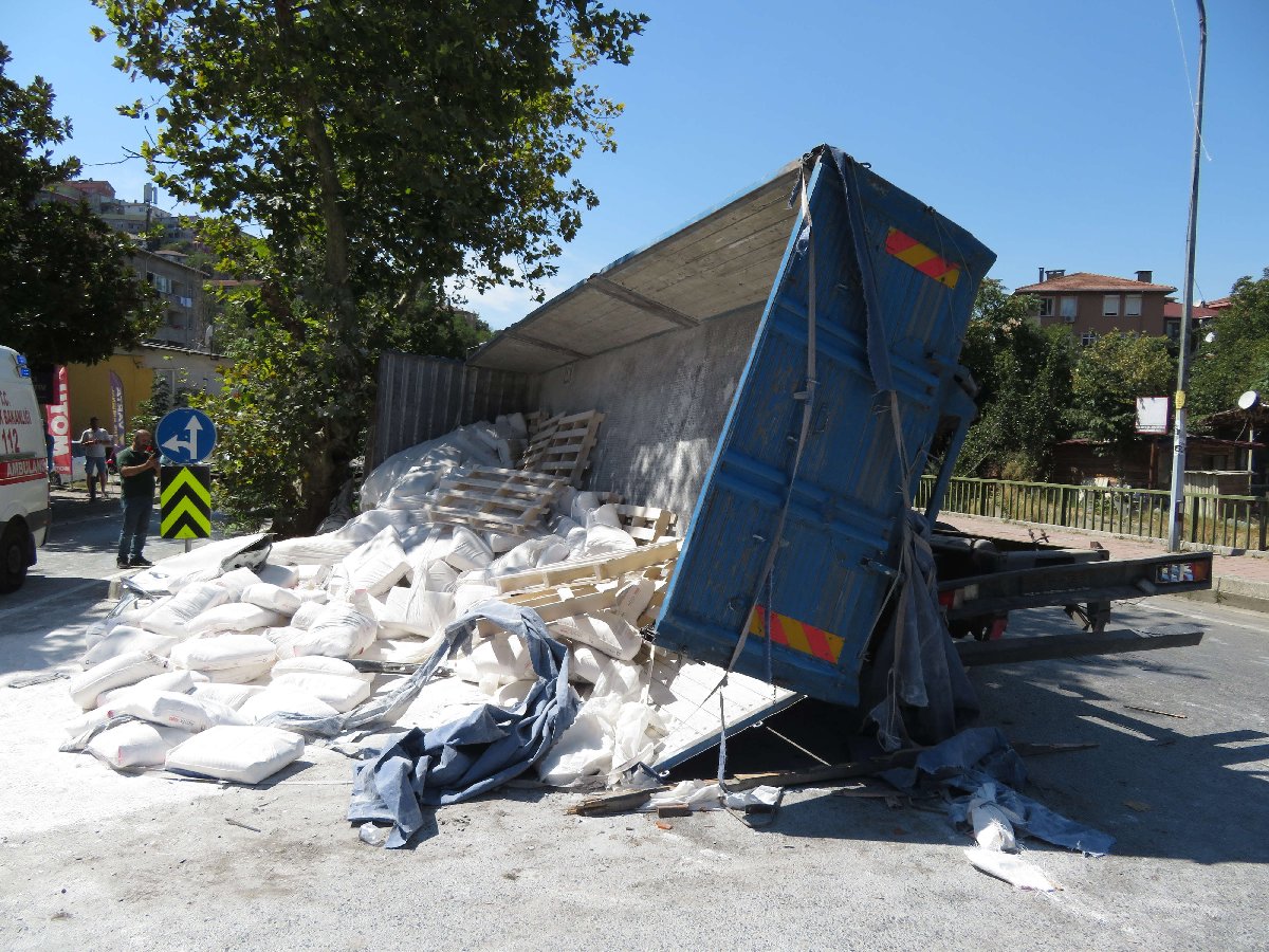 Kaza nedeniyle Kiremitdere Caddesi trafiğe kapatıldı. Etrafa saçılan alçı, uzun süren çalışmalar sonucu temizlendi.