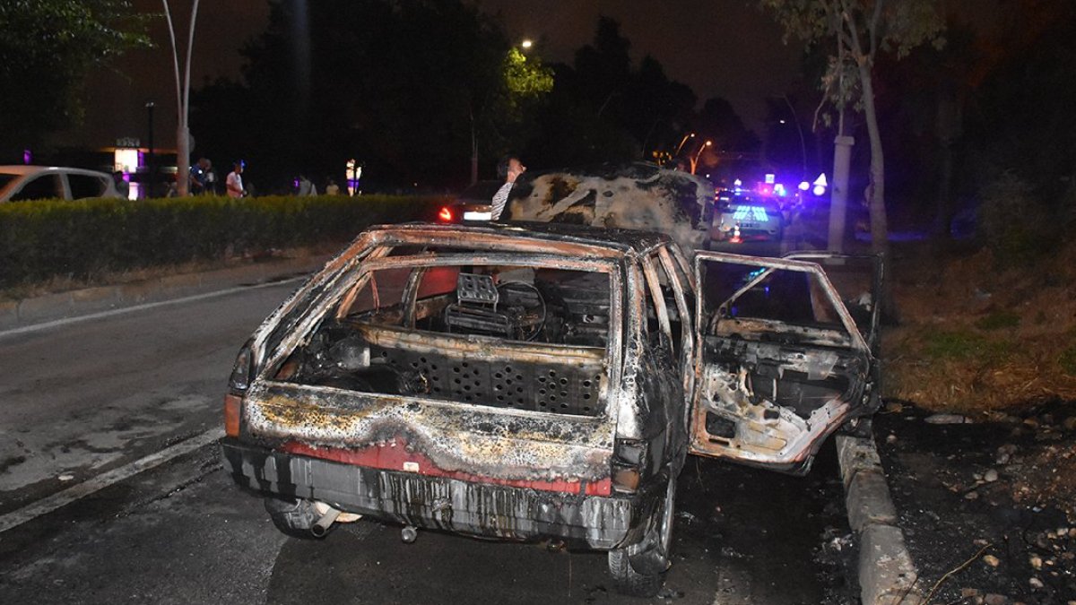 Otomobili saran alevler, yol kenarındaki çalılık alana da sıçradı. İhbar üzerine bölgeye itfaiye ekipleri sevk edildi. Yangın, ekiplerin müdahalesiyle söndürüldü. Araç, yangın sonucu kullanılamaz hale geldi. (AA)