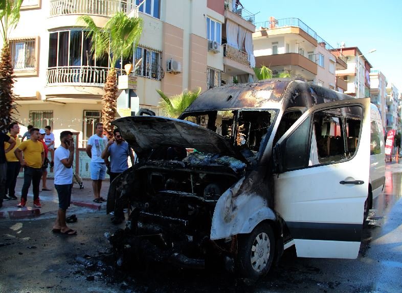 Minibüsü kenara çekip aşağı inen Sinan R., durumu hemen 112 Acil Çağrı Merkezi’ne bildirdi. İhbar üzerine bölgeye çok sayıda itfaiye ve polis ekibi sevk edildi. Yangın tüpünü alan bir vatandaş aracın ön bölümüne yoğun şekilde müdahale etse de başarılı olamadı. Bu sırada dumanların yükseldiği bölüm alevlere teslim oldu ve yangın minibüsün içine sıçradı.