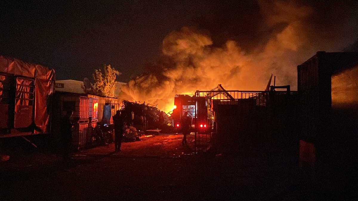 Yangın, saat 21.30 sıralarında Cumhuriyet Mahallesi Yıldırım Beyazıt Caddesi'nde faaliyet gösteren OSB'deki geri dönüşüm tesisinde çıktı.