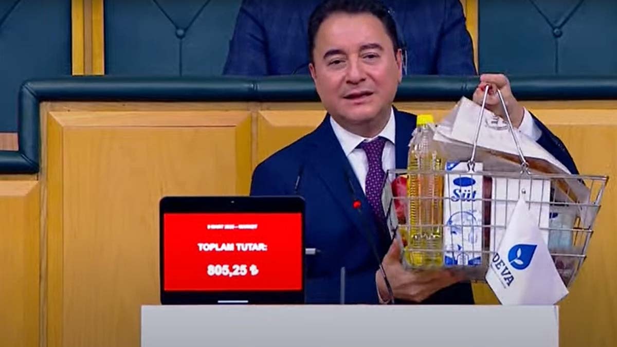 Babacan, "Bundan 6,5 yıl önce markete gidip, bu sepete 200 lira verip, 100 lira alabiliyordunuz. Şimdi 200 yetmiyor, 800 lira alışveriş ile marketten çıkabiliyorsunuz. Geldiğimiz nokta bu, fiyatlar tam 8 kat artmış. Son 6,5 yılda şu ramazan sepetimiz 8 kat artmış. Sayın Erdoğan'ın karnesi, milletin verdiği karne bu. 'Ben enflasyon ile mücadele edeceğim, yetkiyi verin, görün nasıl çözeceğim' diyen Erdoğan'ın ülkeyi getirdiği nokta işte budur" dedi.