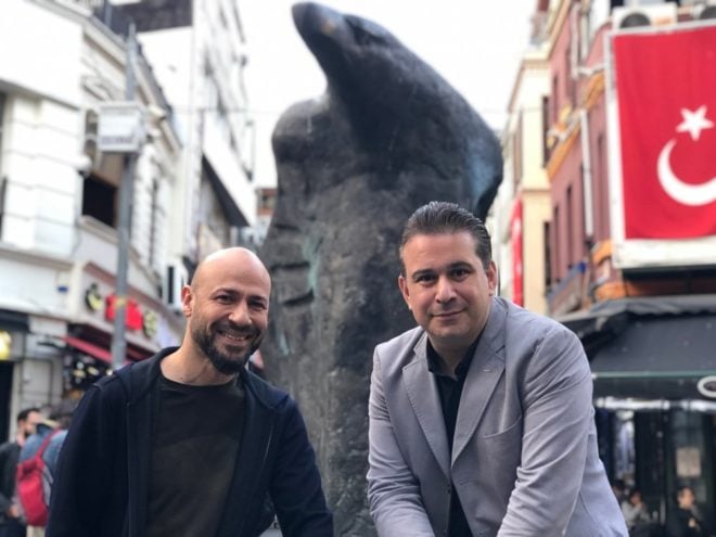 Kahraman Tazeoğlu (solda) ve Ali Haydar Timisi.