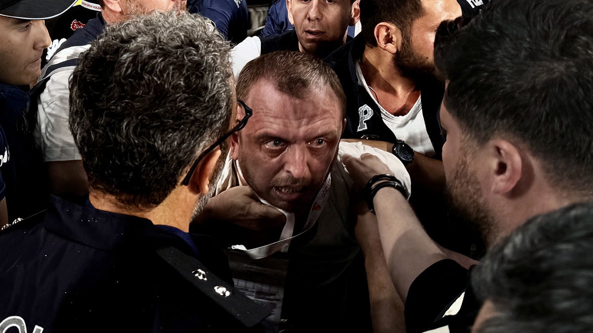 Bunun üzerine İzmir İl Emniyet Müdürlüğü Spor Güvenliği Şubesi ekipleri, Koç'u saha kenarında yürüdüğü sırada iterek düşüren Fatih Özkan'ı gözaltına aldı.