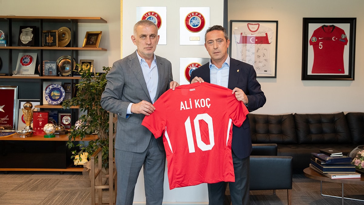 TFF Başkanı Hacıosmanoğlu, görüşme sonunda Ali Koç'a özel olarak imzalamış olduğu A Milli Takım formasını hediye ederek jest yaptı.