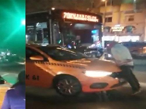 Taksi şoförü, yolcuyu almayınca aralarında tartışma başladı. Taksicinin yoluna devam etmeye kalkmasıyla kişi, önünü kestiği taksinin kaput kısmına yattı.