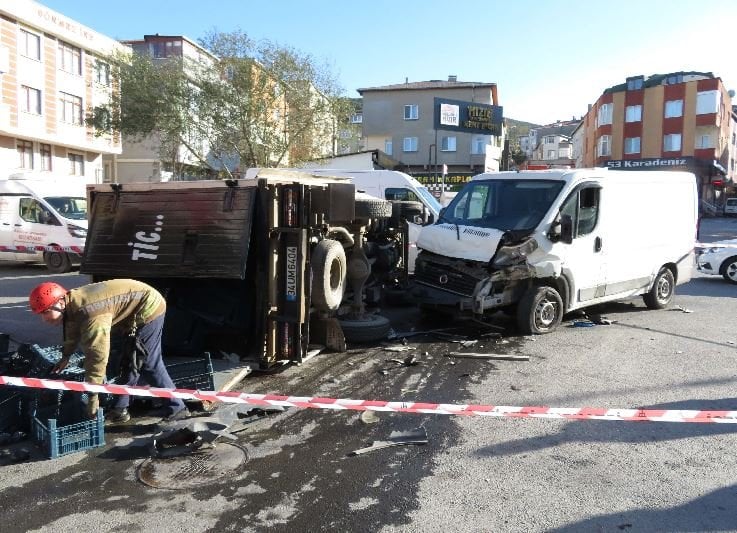 Çarpmanın şiddetiyle devrilen kamyonette bulunan 3 kişi yaralandı. Kazayı görenlerin ihbarı üzerine bölgeye itfaiye, sağlık ve polis ekipleri sevk edildi. Çevredeki vatandaşlar kamyonetteki yaralıları dışarı çıkardı. Yaralılar ilk müdahalenin ardından ambulanslarla hastaneye kaldırıldı.
